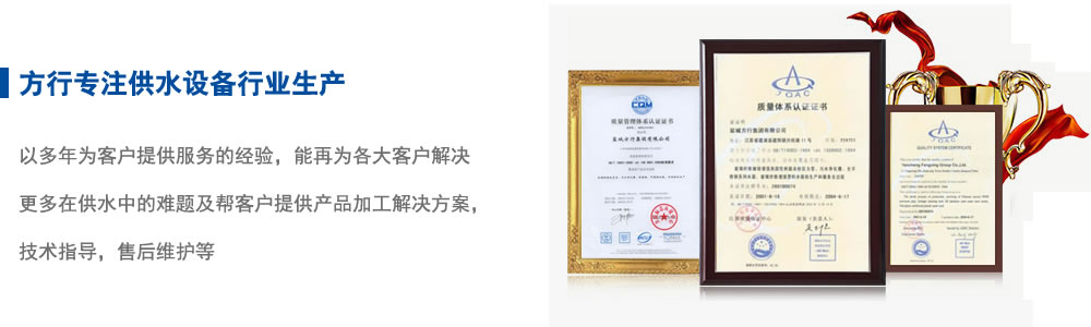 鹽城方行集團(tuán)有限公司秉承“務(wù)實(shí)、誠信、拼搏、創(chuàng)新”的企業(yè)精神,經(jīng)歷了近數(shù)十年的歷程取得了跨越式的發(fā)展。高起點(diǎn)才會(huì)有更高的品質(zhì),優(yōu)雅的環(huán)境,先進(jìn)的設(shè) 備,高效的團(tuán)隊(duì),造就了一批批優(yōu)質(zhì)的產(chǎn)品。堅(jiān)持質(zhì)量、用戶至上的宗旨,公司全面通過了ISO國(guó)際質(zhì)量體系認(rèn)證,是制造供水成套設(shè)備廠家 之一。經(jīng)悉心打造,已享有較高的知名度,產(chǎn)品遍布全國(guó),不斷研發(fā)全新產(chǎn)品,滿足消費(fèi)者的需求 | |